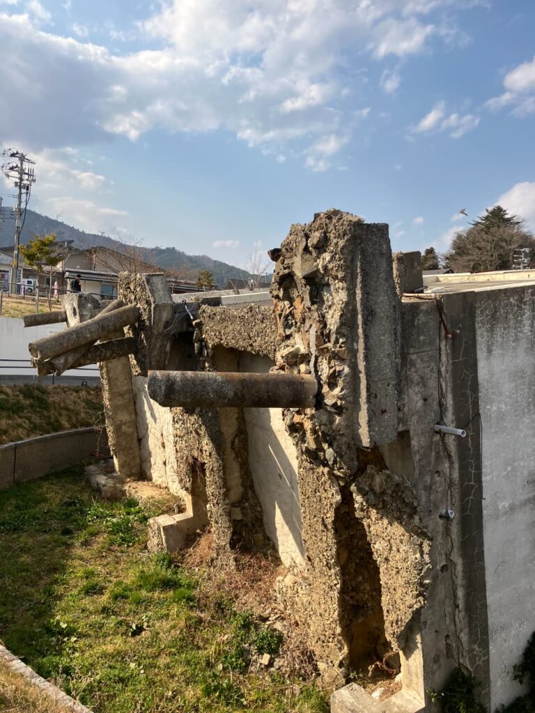 崩れた校舎の前に立つと、時が止まったような感覚に襲われました。風の音すら重く響き、子どもたちの声にならない叫びが聞こえてくるような錯覚に包まれます。